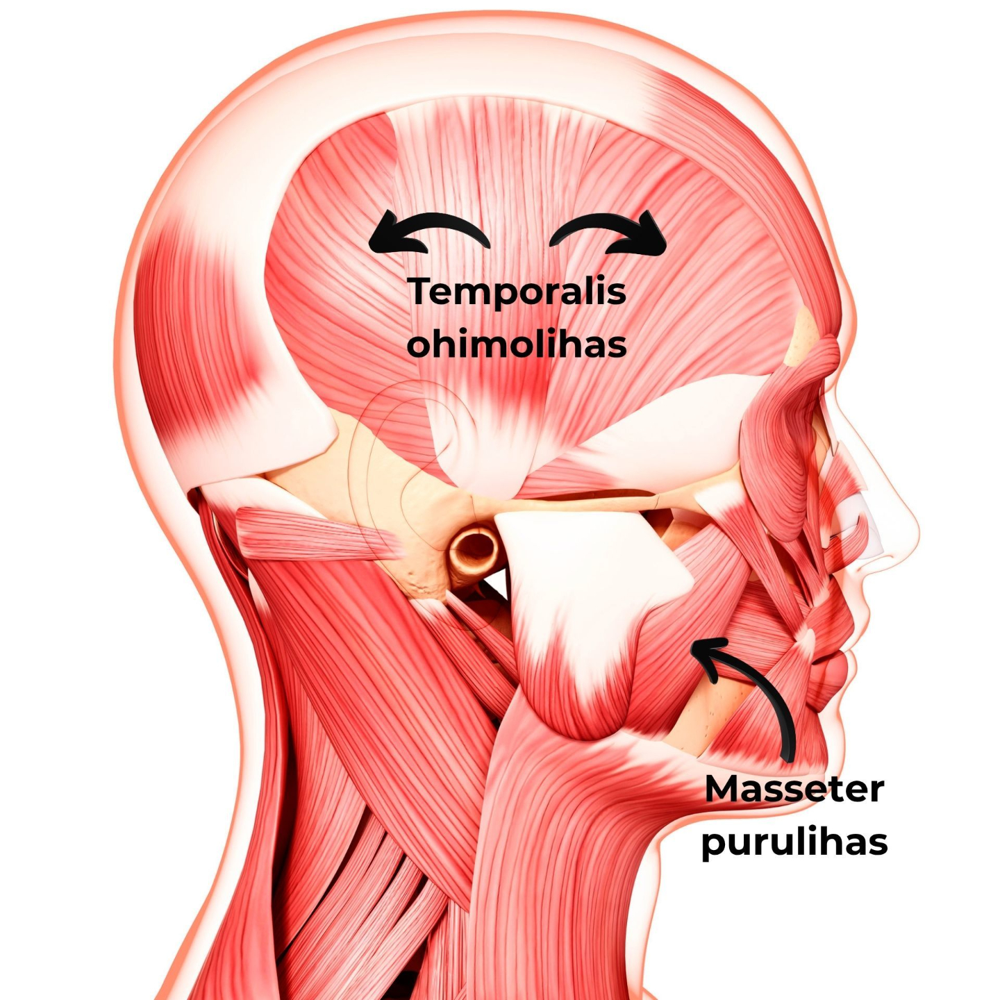 Purentalihakset ovat posken, suun, alaleuan, ja ohimon alueella sijaitsevia lihaksia, jotka mahdollistavat pureskelun, puhumisen ja leuan liikuttamisen. Niihin kuuluvat esimerkiksi masseter- (purulihas) ja temporalis-lihakset (ohimolihas). Kireys purentalihaksissa voi aiheuttaa monenlaisia oireita, kuten päänsärkyä, leukakipua, leuan naksumista ja tinnitusta, ja se voi säteillä myös niskaan ja hartioihin. Kipu ja jumi lisää ärtyisyyttä, kun taas rentous saa hyvälle tuulelle ja energiseksi. 😃